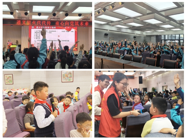 宣讲团精心策划了“遵义红星有奖小竞答”环节,瞬间点燃现场小朋友们的热情,主持人抛出一个个为小员工量体设计的问题后,同学们纷纷踊跃举手抢答,在校园内掀起了一股学习红色文化、传承革命精神的热潮。