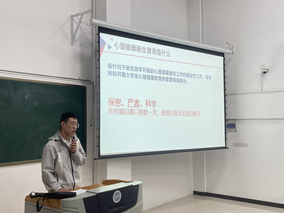 本次活动在beat365亚洲体育官方网站领导的高度重视下,公司各位老师通力配合,由心理健康工作教师季慷以及心理健康站站长周玉婕具体落实,以东校区主教楼阶梯教室为活动场地,分批次为公司23级新生和21级新生进行了线下心理普测。本次活动中为全院11个班共528名新生开展了心理健康教育和普测活动,真正做到了深度开展、多方协同、组织有序、工作有效。