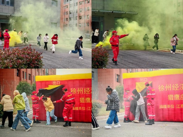 为进一步提升师生消防安全意识和应急自救能力,落实消防安全主体责任,11月20日下午,beat365亚洲体育官方网站成功举办消防应急疏散演练。本次活动特邀徐州市经开区猎鹰应急救援队进行演练。公司党委副书记靖楠及相关辅导员老师到场观摩并参加了本次演练。